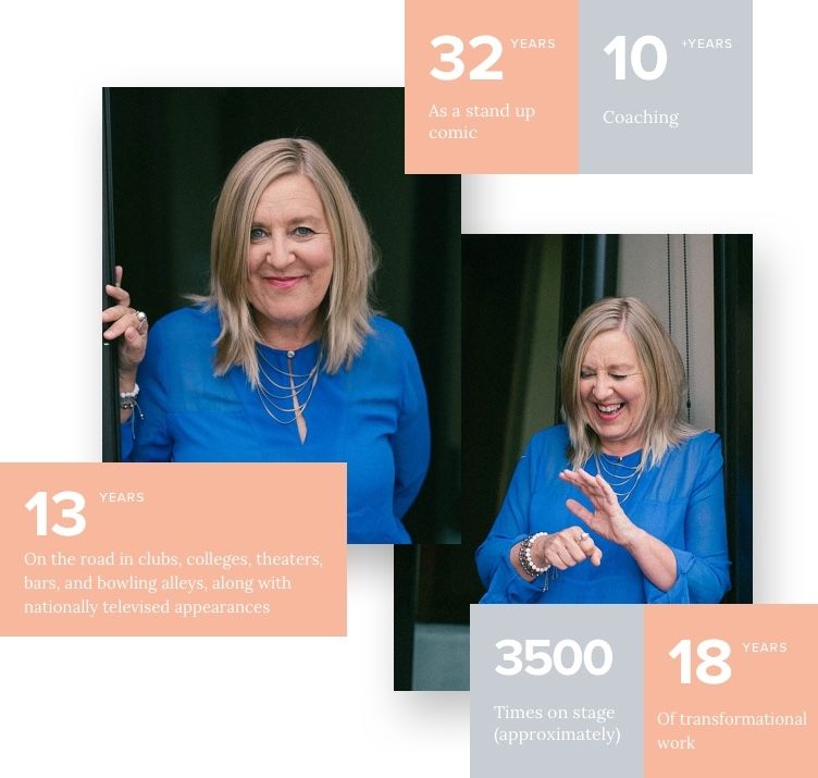 In 34 years of performing comedy, and 7 years of coaching over 250 people in this process, I’ve seen the freedom and healing it provides. I get it. It took many, many years of surviving before I learned to recognize, accept and dissolve my fear and create from a genuine, honest place, rather than survival. It’s allowed me to access and generate my creativity with relative ease, and substantially deepened my connection to others–not just my audience. And you can have this, too.